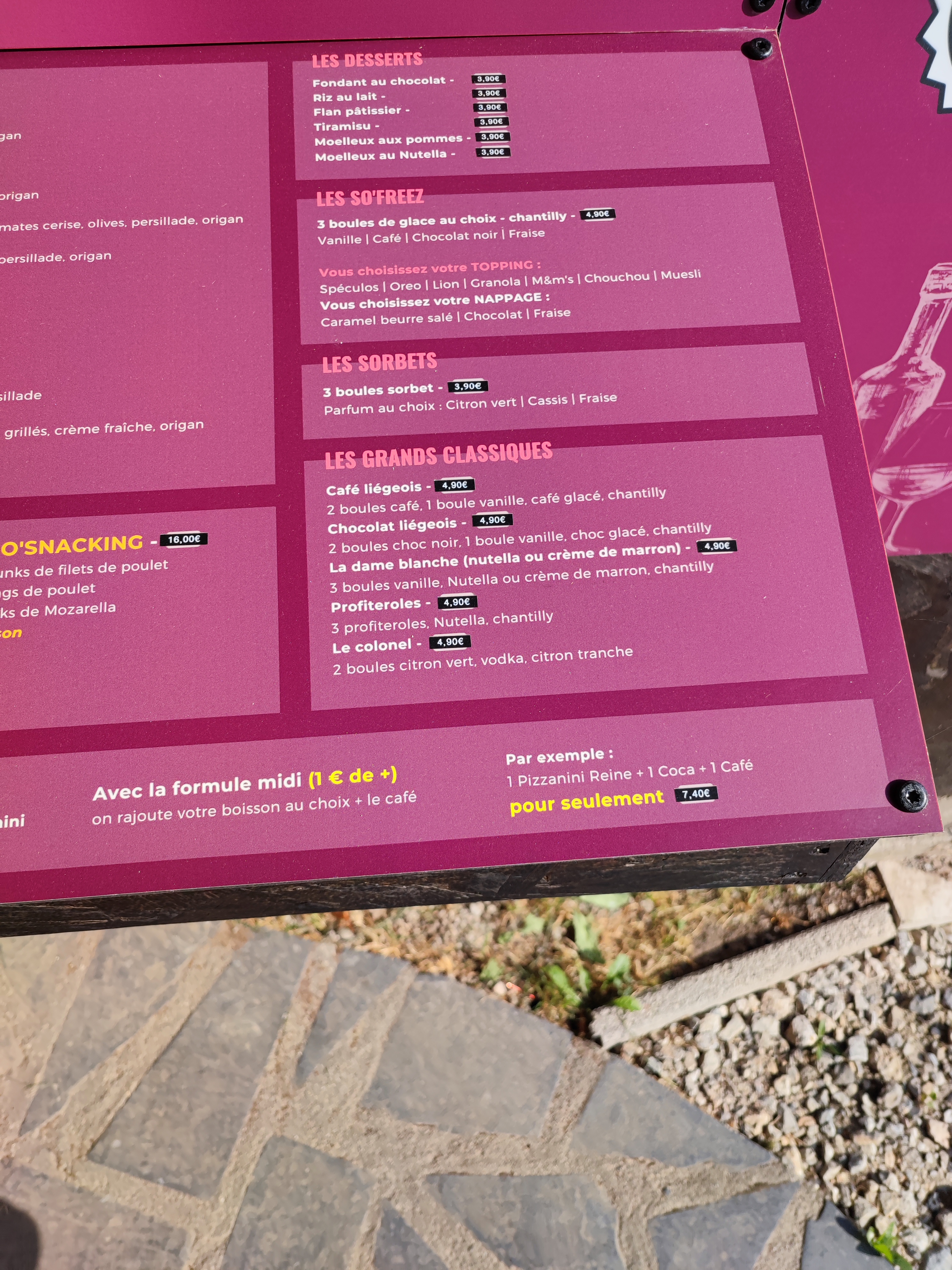 Les pizzas sont excellentes, ainsi que les desserts un vrai délice (surtout le tiramisu spéculos!). Je recommande les yeux fermés.