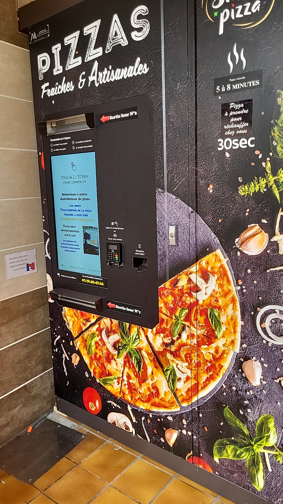 Très bonnes pizzas. On a pris Normande et chti. Très peu d'attente devant la machine.