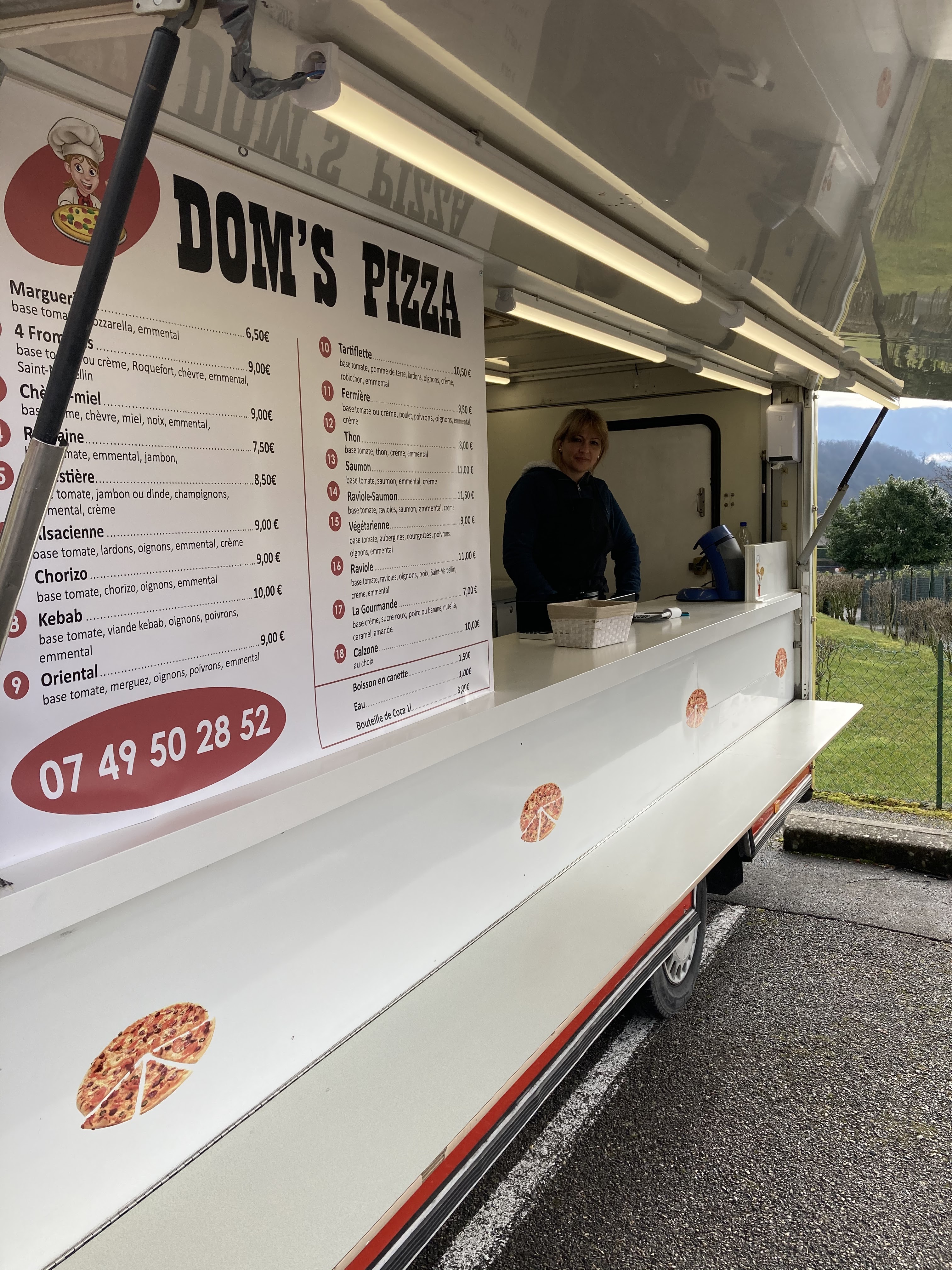 Tous est parfait pizza super bien garnies produit frais de très bonne qualité et la sucrée à la poire caramel nutella une tuerie vraiment 🤤 nous recommandons à 100% et l’accueil au top par une famille géniale Merciiii à vous