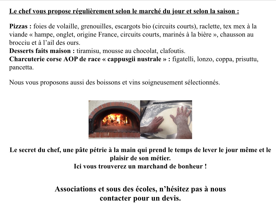 Un large choix de pizzas délicieuses et généreuses, préparées par Roland et Jo, toujours aux petits soins pour leurs clients. Quelle chance de les avoir juste en face de chez nous 😉