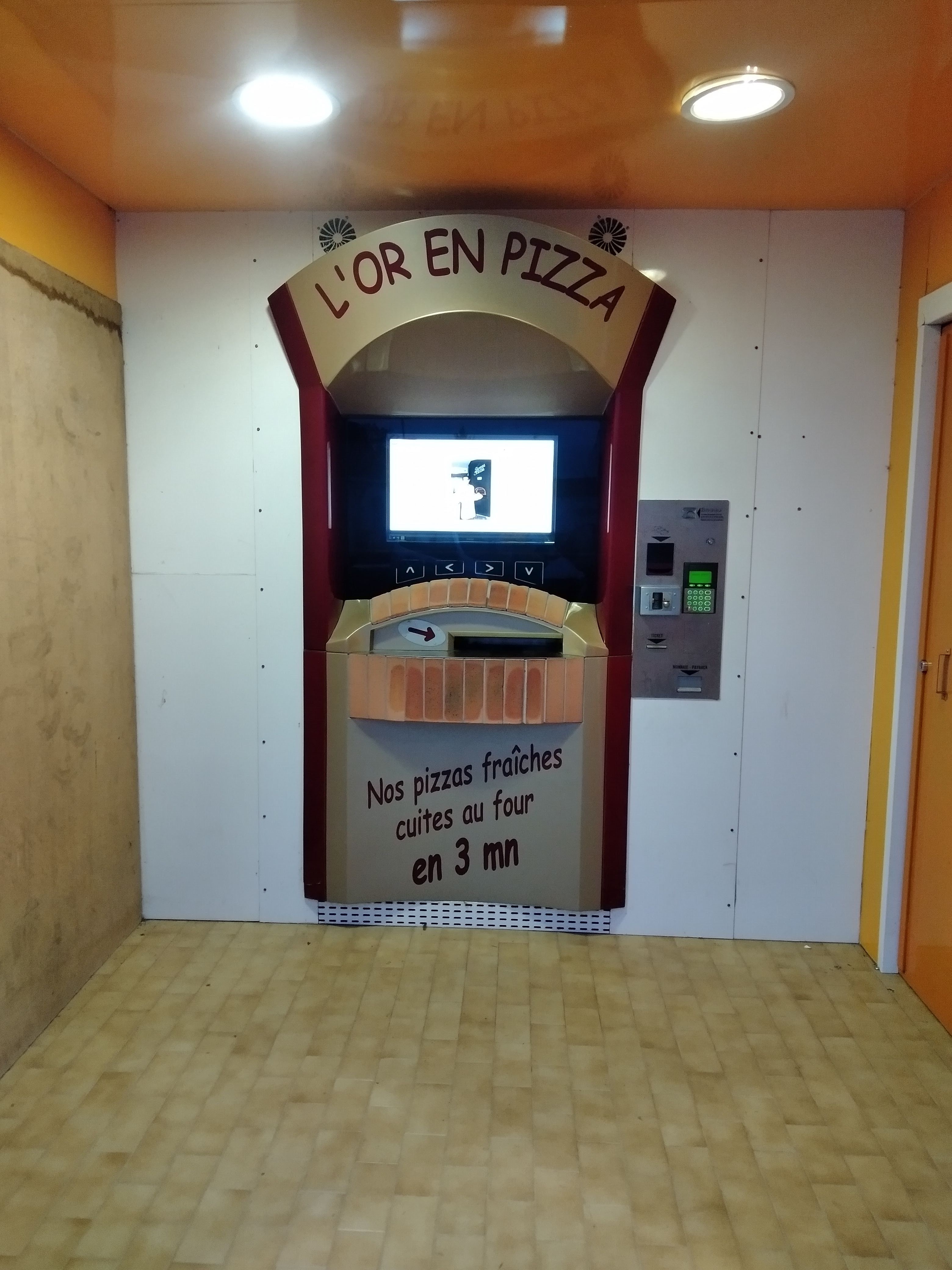 De passage dans le coin et pas envie de faire à manger. Je tombe dessus par hasard et décide donc de m'y arrêter. Je connais déjà le principe donc je ne suis pas perdu, je regrette seulement que l'écran ne soit pas tactile, bref je commande et 3 minutes après je dévore une pizza au saumon comme un barbare et oui elle n'est pas prédécoupée...c'est dommage. Merci au monsieur que j'ai vu sur l'écran un message suffit.