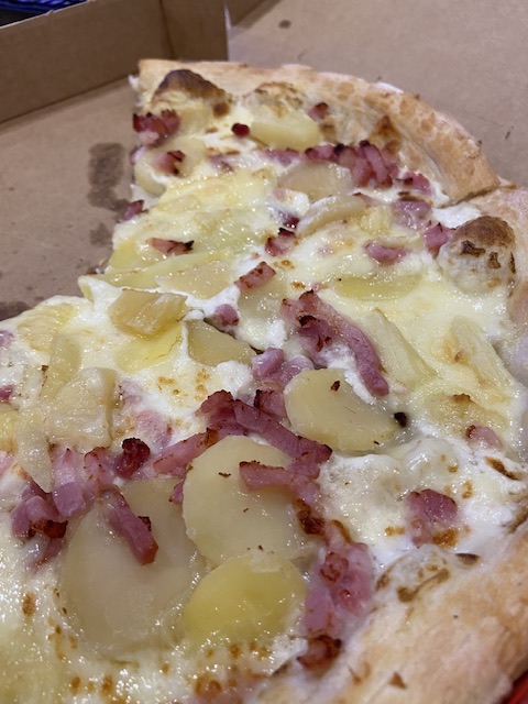 Ni bonne! Ni mauvaise Un poil cher par rapport à la garniture, je testerai peut-être encore une fois histoire de me faire une idée catégorique. En même temps il n’y a pas de concurrence dans le secteur. Donc on se contente du suffisant. (Sensation de pizza industrielle, pardon si je me trompe mais si ce n’est pas le cas alors problème de qualité des produits). En tout cas ça dépanne.