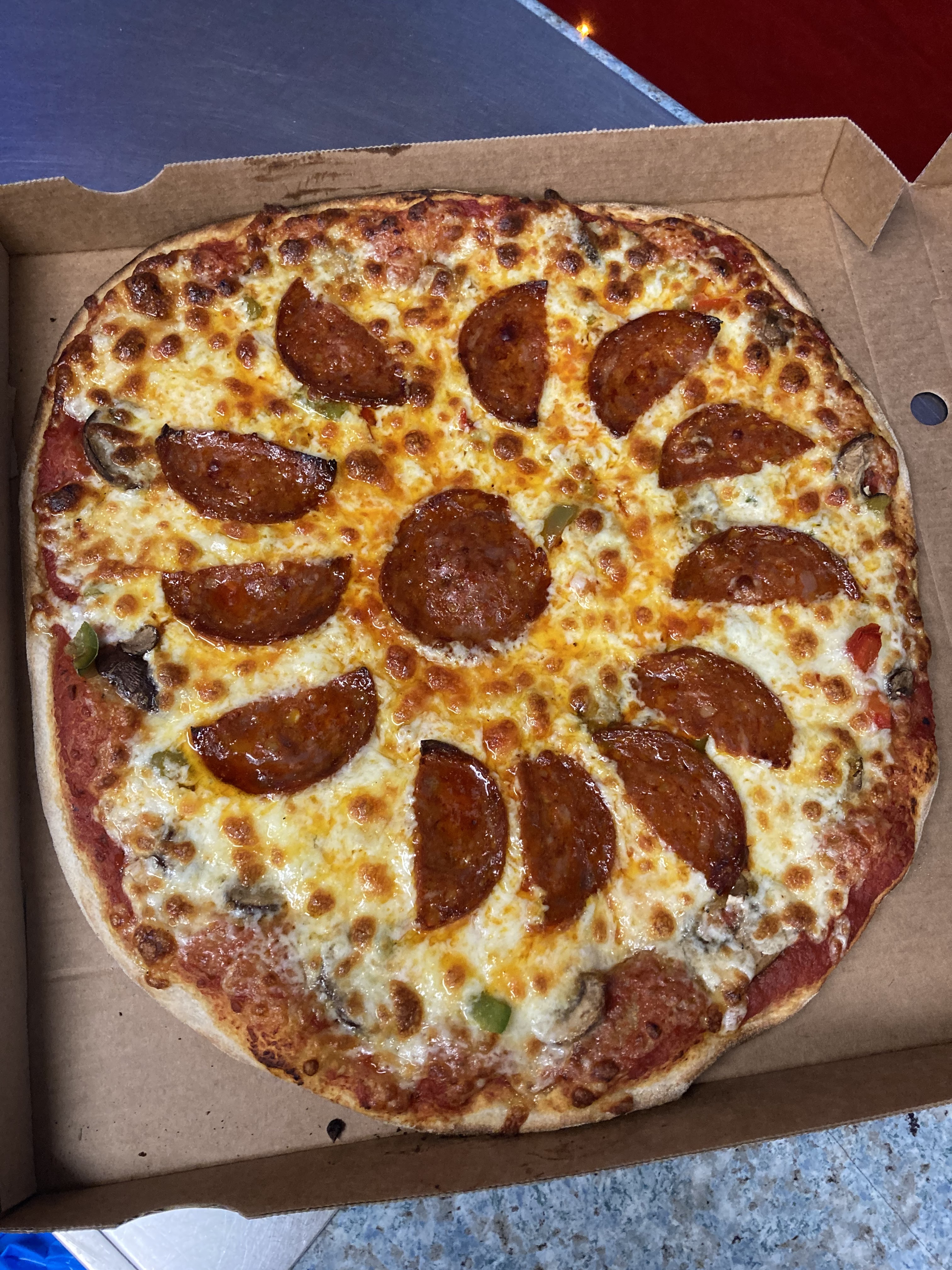 Merci beaucoup pour votre avis qui compte énormément pour nous :) Nous prenons note pour la taille des pizzas, À bientôt, Sandjo Pizza